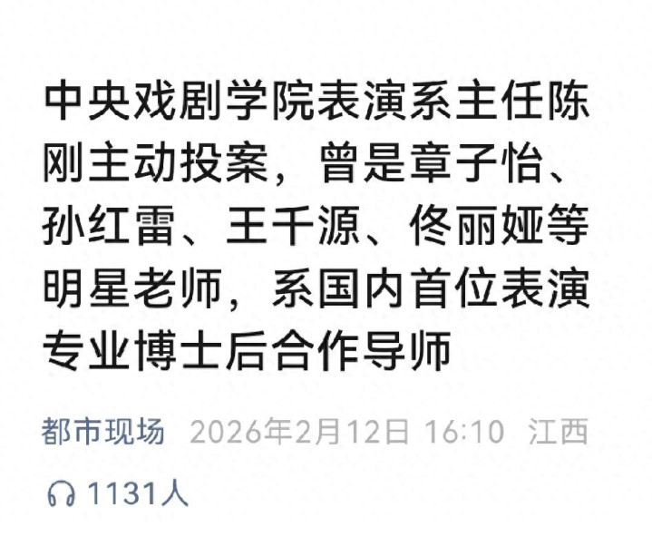 中央戏剧学院(中戏)表演系主任陈刚“主动投案”。这通常意味着他向纪检监察机构主动交代问题,接受调查。